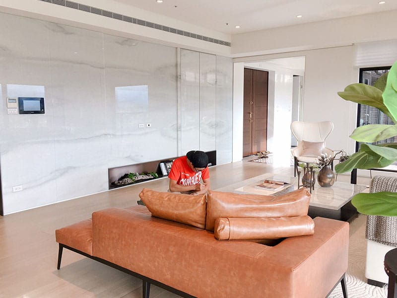 最後經過幾次名展音響師傅與設計師溝通,位置補強與調整方式,雙方合作讓屋主終於,可以開始安裝家庭劇院且不用打掉一大半的客廳