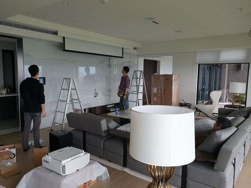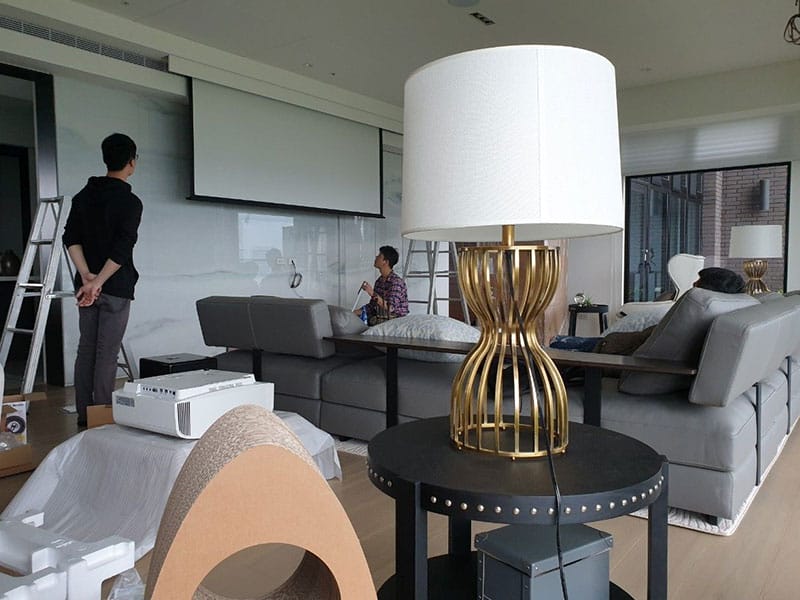 業主想要安裝布幕以及 5.1聲道還有投影機升降系統但是...難度實在太高,樣品屋會遇到以下狀況