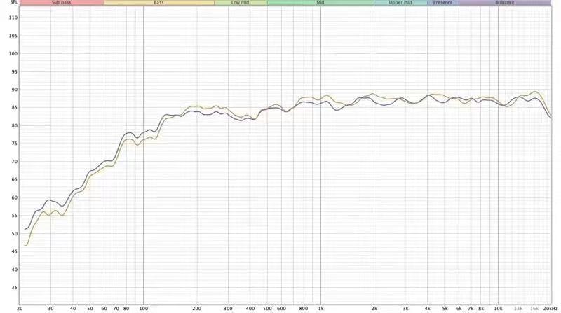 除了體積上的差異外,低音喇叭口徑也有區別:D95是6.5英寸;D85是5.25英寸。使用Dayton EMM-6測試麥克風和福克斯特2i2外置聲卡來測試一下兩款揚聲器,發現兩款的頻響曲線幾乎是一樣的,而且也都屬於典型的低頻延伸受限制。