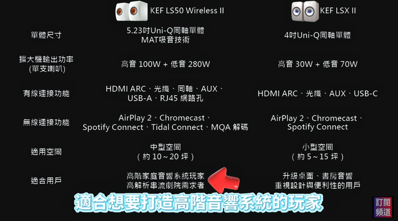 而 LSX II 則更適合用在書桌或小房間,體積小巧,近場聽感出色,適合想輕鬆享受 KEF 音質、但不追求高規格的日常用戶。兩款各有特色,依空間與需求選擇最重要!