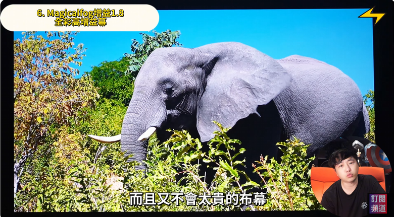 這款 MagicalFog 的布幕增益高達 1.8,可以讓 1000 流明的投影機反射出接近 1800 流明的畫面亮度,整體畫面 punch 感十足!