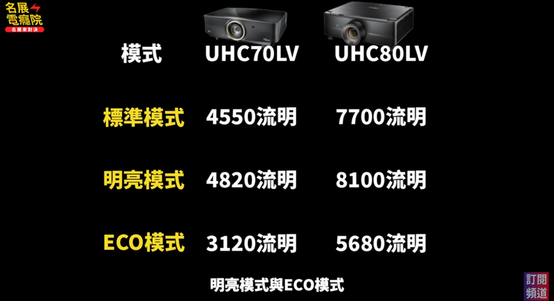UHC80LV 則擁有高達 8000 流明,即使在開燈或大空間使用也清晰可見。