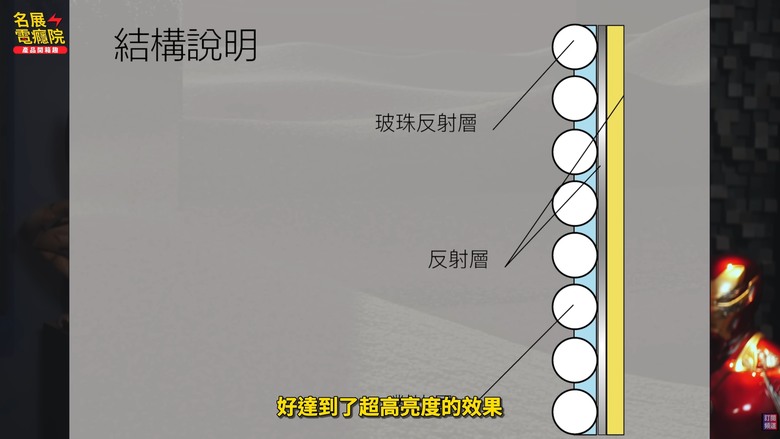 這款布幕的關鍵設計是「玻璃珠反射層」。