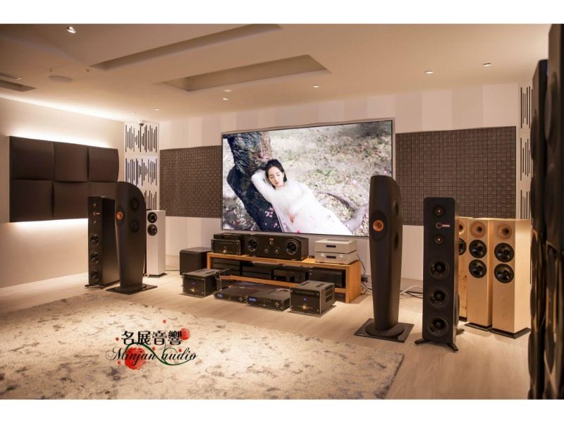 「名展音響」桃園旗艦館去年六月喬遷至現址 除了在一樓內側打造一間獨立的大型視聽室外,大廳更創新地規劃為「三向式」設計 三面牆各有一套多聲道家庭劇院,提供從新台幣兩萬元至上百萬元的視聽音響系統 可滿足入門者到發燒玩家的所有需求。