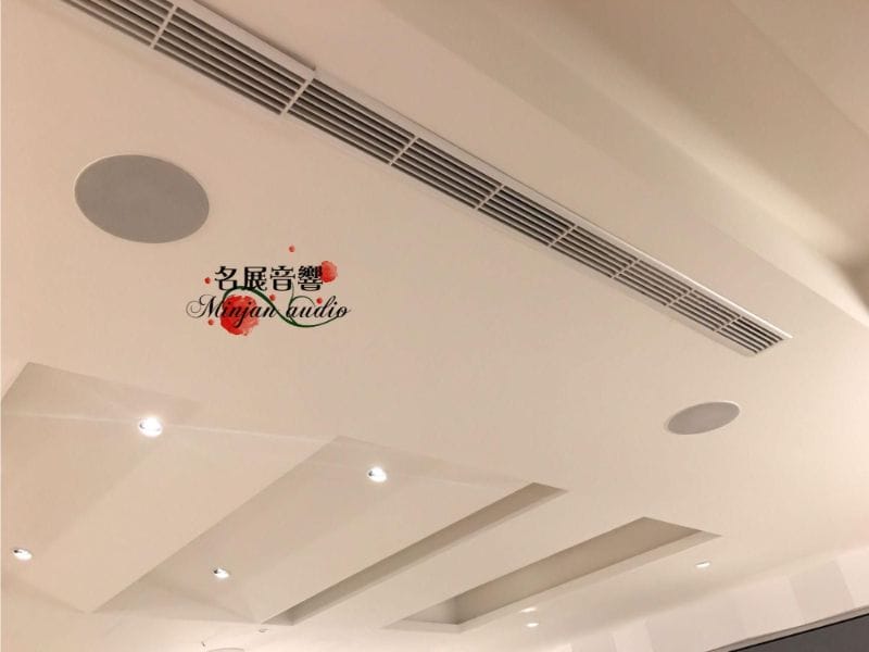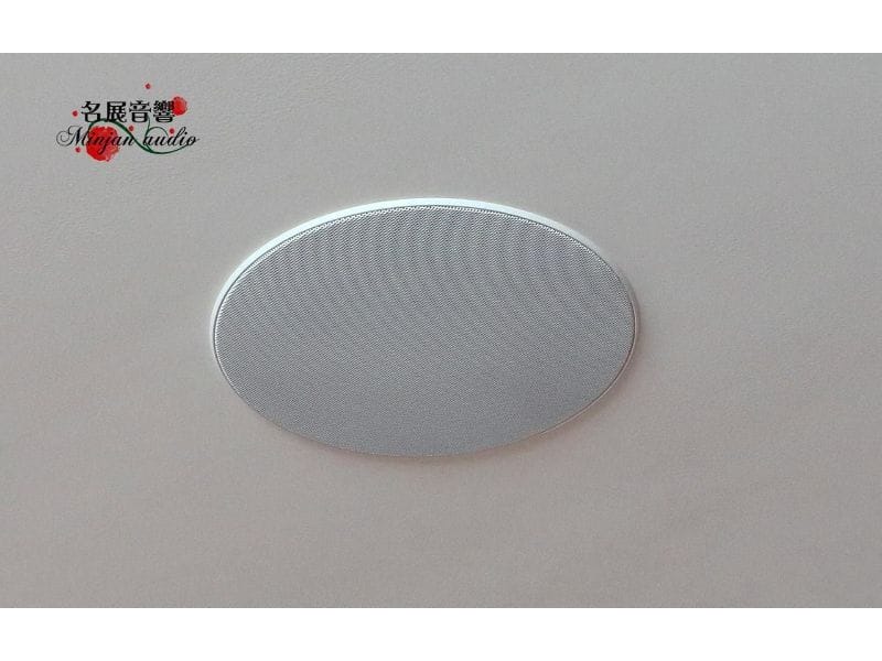 這間視聽室天空喇叭使用了三對(六支),英國Monitor Audio C265-IDC嵌入式喇叭 分別排列在視聽室天花板左右兩側前、中、後位置。 「名展」的專業施工讓它很平整地與天花板接為一體。對了可別因為這款喇叭貼上網罩後外觀樸實而小看它 其實它是高、中、低三單體同軸。 發聲設計(採用1吋鍍金振膜高音、4吋中音與6.5吋低音各一支) 頻率響應為60Hz-30kHz且最大音壓可達108dB 而且它的中高音單體還有相當大幅度的轉向調整範圍!