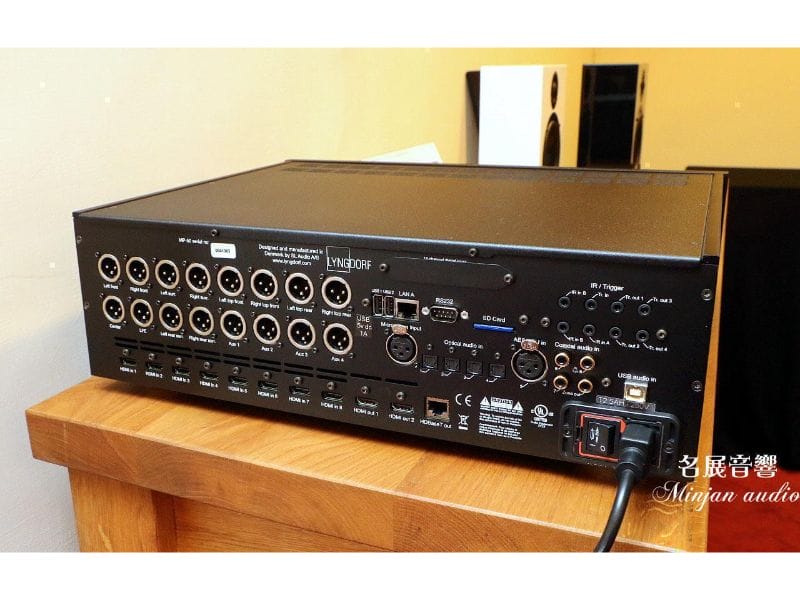 Lyngdorf MP-50多聲道解碼前級備有八組HDMI輸入與兩組HDMI輸出 16聲道類比音頻輸出皆為平衡端子。本機在八月下旬台北圓山大飯店音響展 Lyngdorf總代理「百鳴」的展房曾做靜態展出,目前已常駐 名展音響桃園旗艦館二樓這間視聽室,想要親身體驗其音樂與電影表現的朋友 不妨向名展桃園旗艦館洽詢預約試聽。