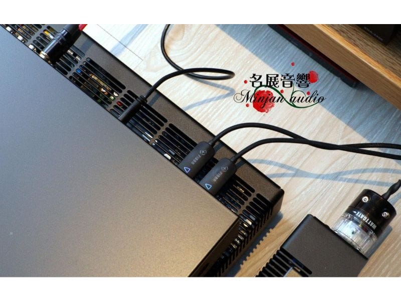 雖然名展視聽室裝潢時已經在牆面及天花板預埋管道,日後想要更換影音線材並不困難,但既然影音系統裡其他環節都那麼考究,HDMI線材當然也要使用當前最佳的FIBBR,先前的參考HDMI線材 (後來更換更高階的Pure系列),這間視聽室右側牆面有一道門,就是通往外側另一間超級家庭劇院視聽室的通道。