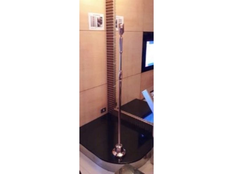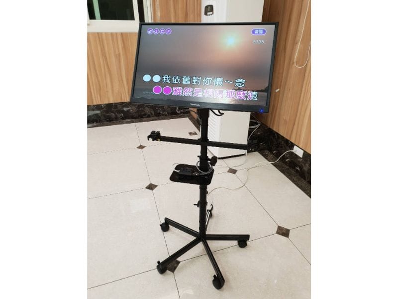 家裡有KTV室的,除了直立式專業麥克風,可以設計舞台架設副螢幕,上台唱歌更有一番樂趣。