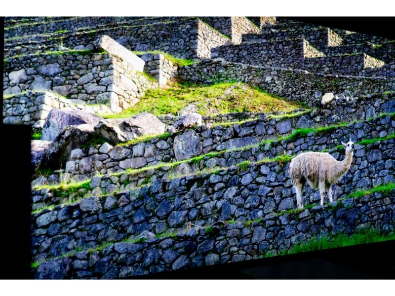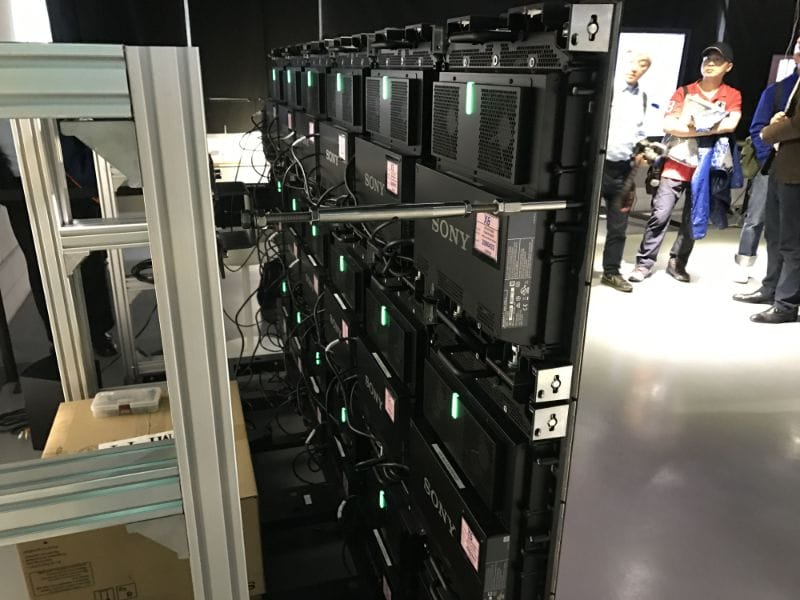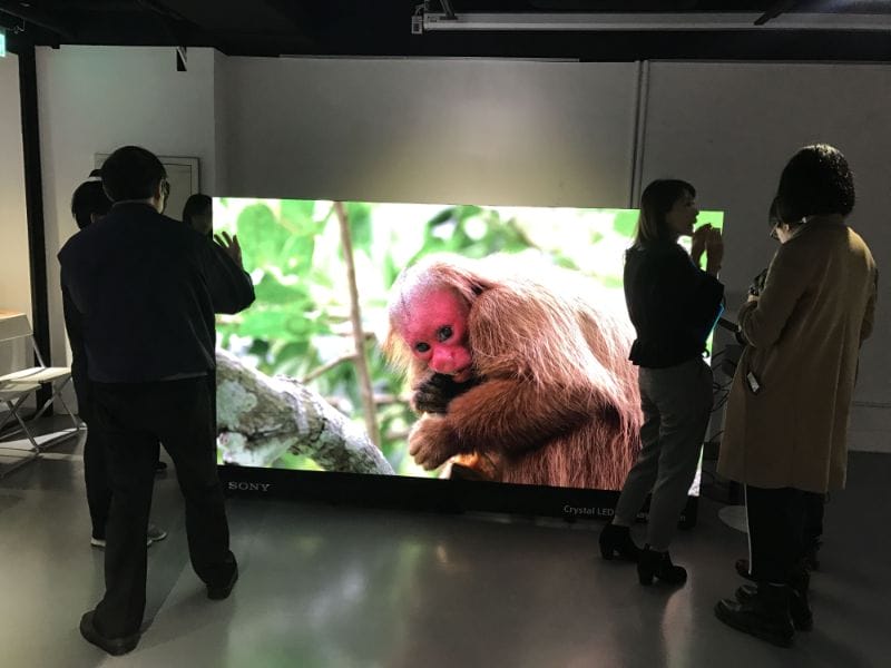 色彩保持SONY電視一貫發色,鮮艷程度與飽和度都非常精緻,暗部細節也相當好,所以價格高是必須的,也難怪該電視前聚集了不少人潮。背後是用無數個組件組裝起來,做成無接縫無邊框的設計。
