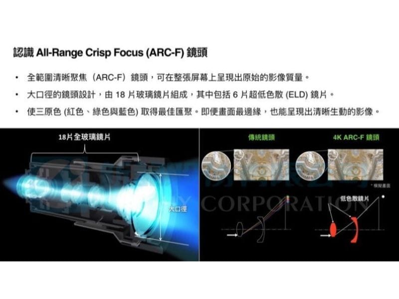 新一代的VW870ES 旗艦真4K投影機與2018年旗艦VW760ES(現在變次旗艦~笑~^__^),最大的差異~在於鏡頭,這顆ARC-F鏡頭是目前家用投影機所能使用的最高等級,光鏡頭要價就要30萬台幣,已經達到媲美電影院等級鏡頭。