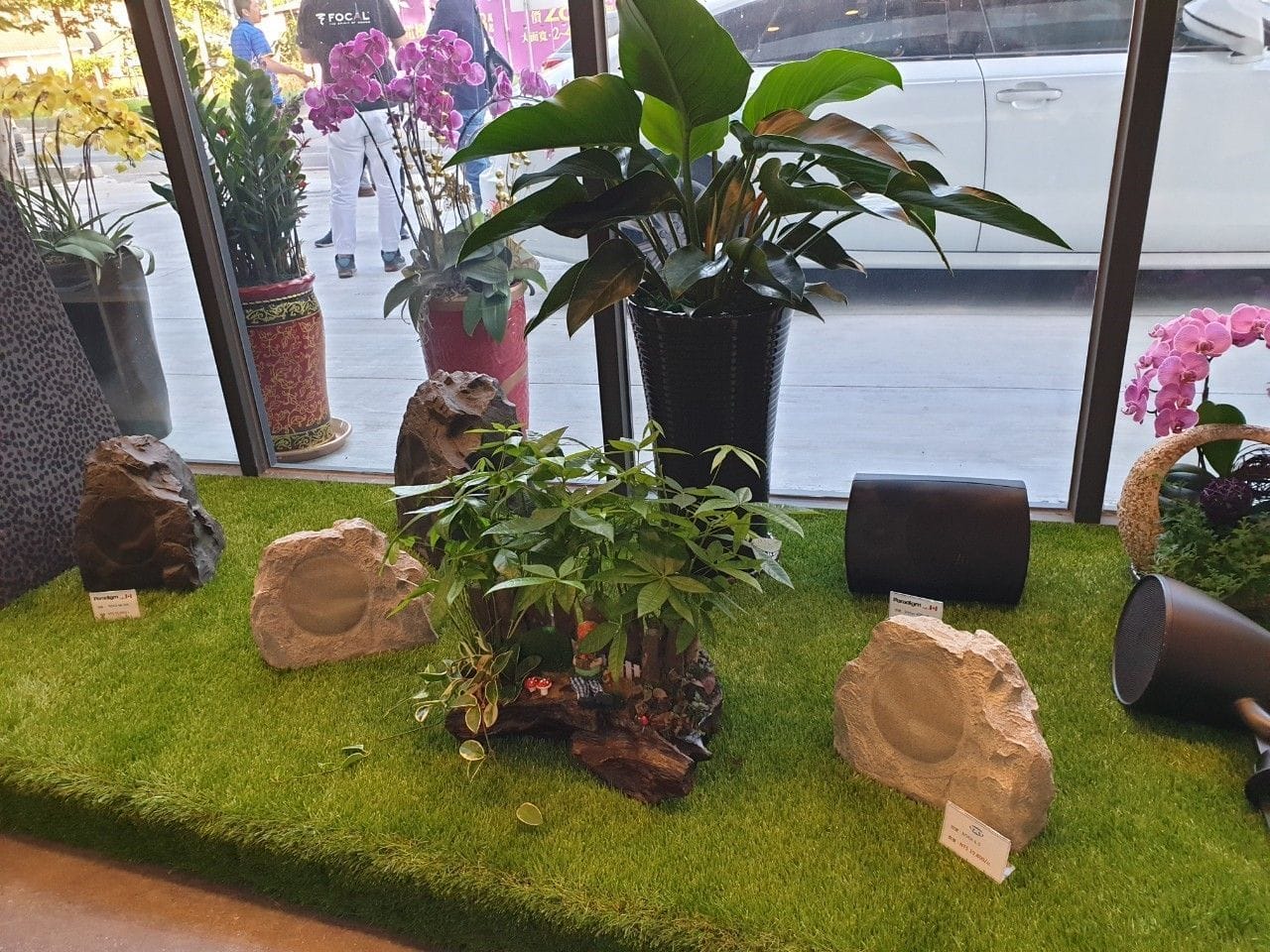 我們名展音響也曾經使用在安裝案上像是一樓鋪滿草皮悠閒的後院擺放石頭造型的喇叭播放輕音樂配上搖椅我的天啊...在庭院超愜意的。