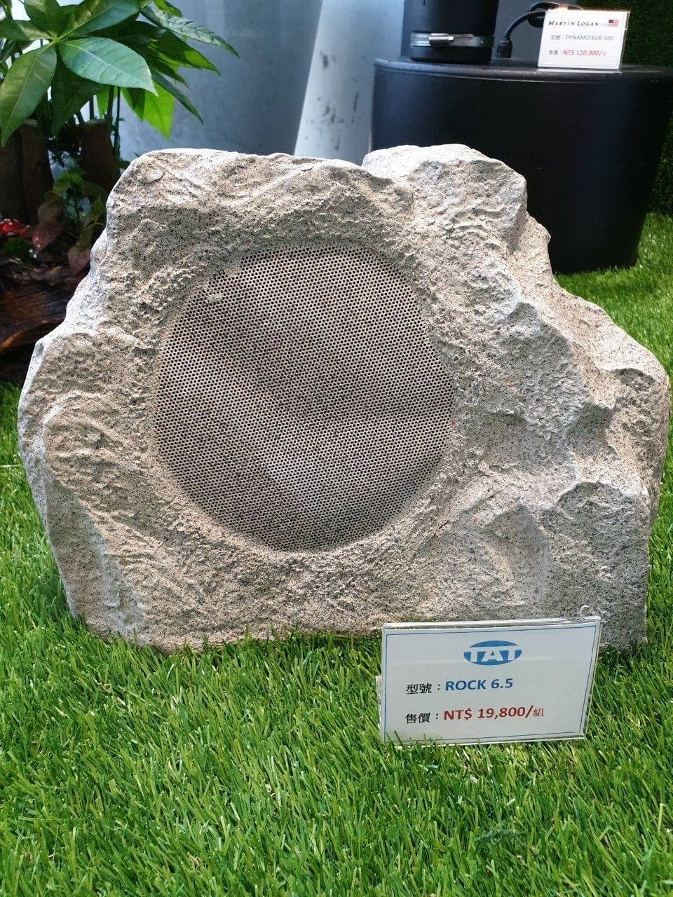 再來我們到達的是台音大廳的左邊有著玲瑯滿目的奇山異石這些都是戶外防水喇叭庭院、花圃、涼亭、球場、停車場皆可安裝有長相蘑菇頭的360度戶外喇叭也有賣長得像喇叭的岩石唷深淺色系皆有。
