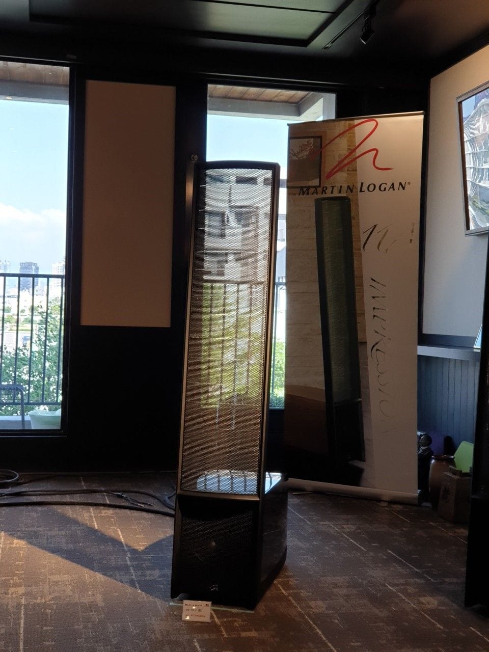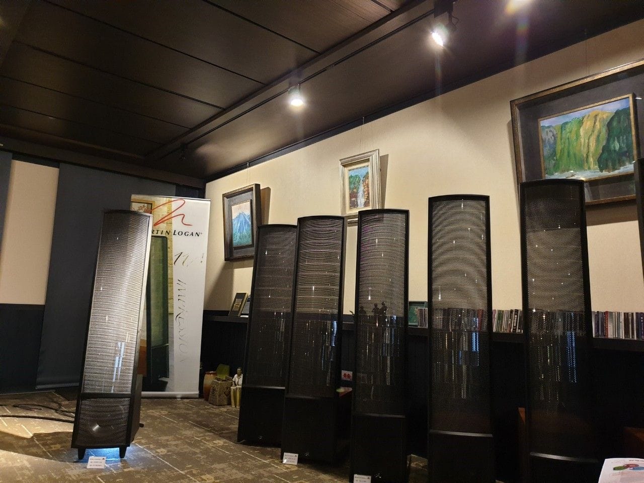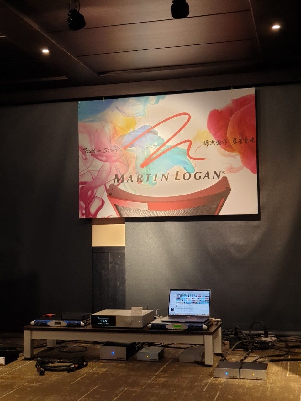 來到台灣 Martin Logan 代理商的視聽室 才能見到的靜電喇叭排排站 若要總結靜電喇叭的特質 我覺得在其美觀的透明振膜物外表下 中高音的樂器、人聲、聲音特質高度還原的基礎下 與低音部重低音喇叭的分離度、層次感極佳 (擴大機分離&未共用音箱) 因此能造就靜電喇叭獨樹一幟的特色 而在適宜的聆聽空間,與優良的電源處理供應能量下 兩支喇叭中間發聲描繪出的音像(聲音的具體形象) 實在大的驚人 想實際感受Martin Logan,歡迎大家就近來名展音響二樓聆聽。