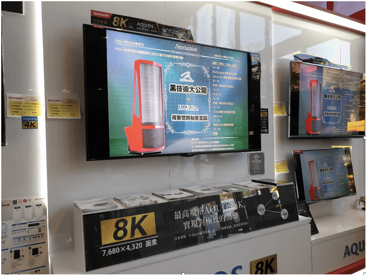 真8K日本製造,AQUOS蛾眼面板 7680*4320 三千三百萬畫素,鋼鐵人也說愛你三千次 目前Youtubeu已有許多 風景壯觀的紀錄片採用8K拍攝並上傳 漫威星際特攻隊2同樣採用8K攝影機拍攝 在明年2020東京奧運更會提供8K實況轉播 SHARP現在也是郭董的 將日本私藏科技產品給台灣享受,讚讚 !
