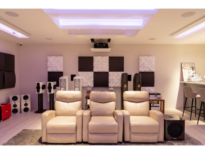 這隻喇叭優異之處,上有長達112*28cm寬的新一代靜電膜下為雙擴大機+雙八吋的主動式超低音附帶 ARC 空間校正的能力前面說到靜電振膜是前後發聲,音場寬廣遼闊為發揮這個特點,低音部分也砸重本做了雙重低音前後發聲的設計 一對主喇叭就搭載了4顆(左2+右2) 主動式重低音的效果,魄力十足。