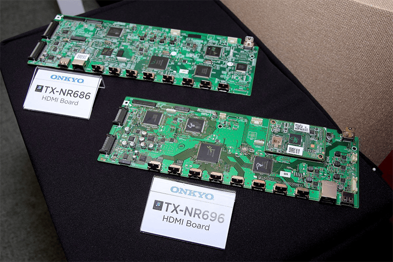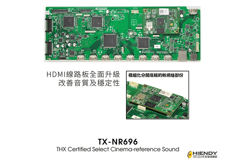 電路板重新設計,優化HDMI訊號傳輸路徑,WIFI網路獨立模組化,相較於前代擴大機ONKYO 686,將HDMI數位板大改造,縮短訊號傳輸路徑,降低信號干擾與失真,其中又以最常使用的BD/ DVD端子路徑最短真是了解消費者使用習慣的優質設計改良。