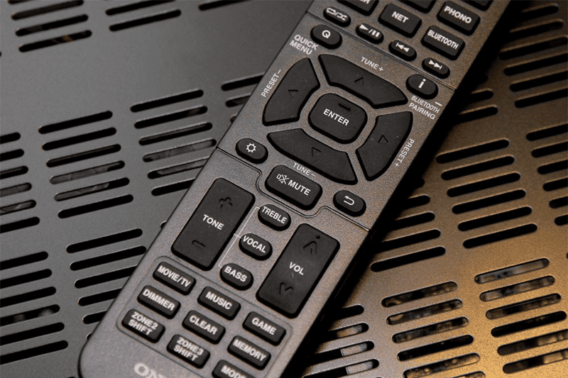 熟悉的獨立ZONE2 ZONE3獨立鍵回來啦~~還多了HDMI區域切換功能,搭配ZONE2 HDMI使用超貼心。藍芽的配對Pairing快捷鍵,這次也直接標示在新的遙控器上下方新增TONE調音快捷鍵(TREBLE – VOCAL – BASS)TREBLE=高音,BASS=低,高低音大小可調整行之有年,但ONKYO 696遙控器,把他們做的更簡易明瞭好操作,再次改款新增的「VOCAL」按鈕,直接調節人聲强度