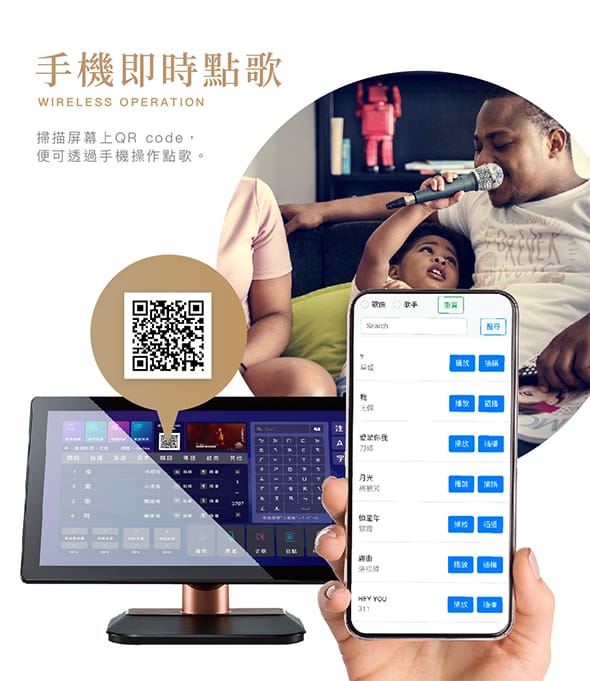 ⦁ 掃QR CODE,讓手機、平板電腦變身遙控器,隨時點歌沒距離