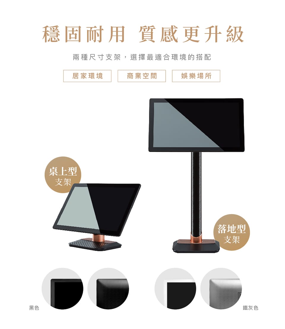 ⦁ 提供桌上型及落地型支架供選擇,方便搭配環境