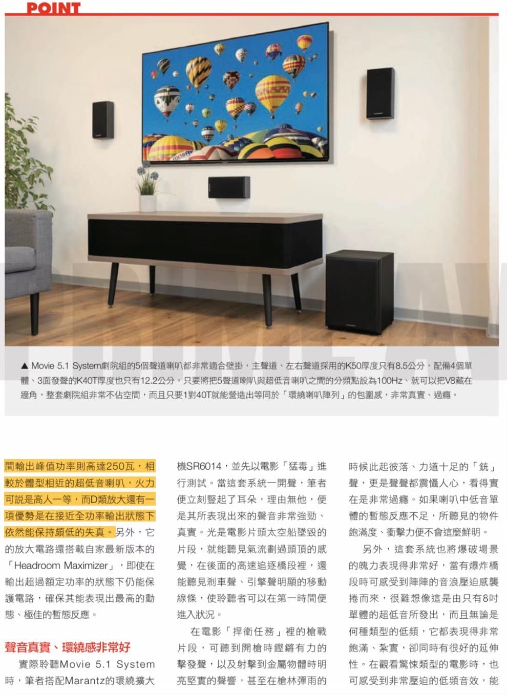 坐在客廳中,讓靈魂感受空氣微微的震動、讓雙耳被清晰的樂聲環繞包圍,聽過就絕對回不去了!聲歷其境的強大音效,來自真實的喇叭傳遞,M&K Sound始終堅持以最單純的方式,表現最強大的效果,不使用藍芽傳輸、不依靠虛擬音場。Movie 5.1 system,獻給對生活有追求的你。