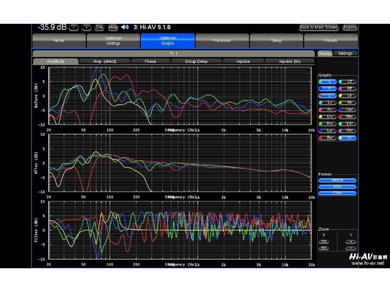 相關裝潢全部完成後,重點就是影像及聲音的調整,Trinnov audio 擴大機針對聲音的調整有相當厲害的頻譜調音測試。