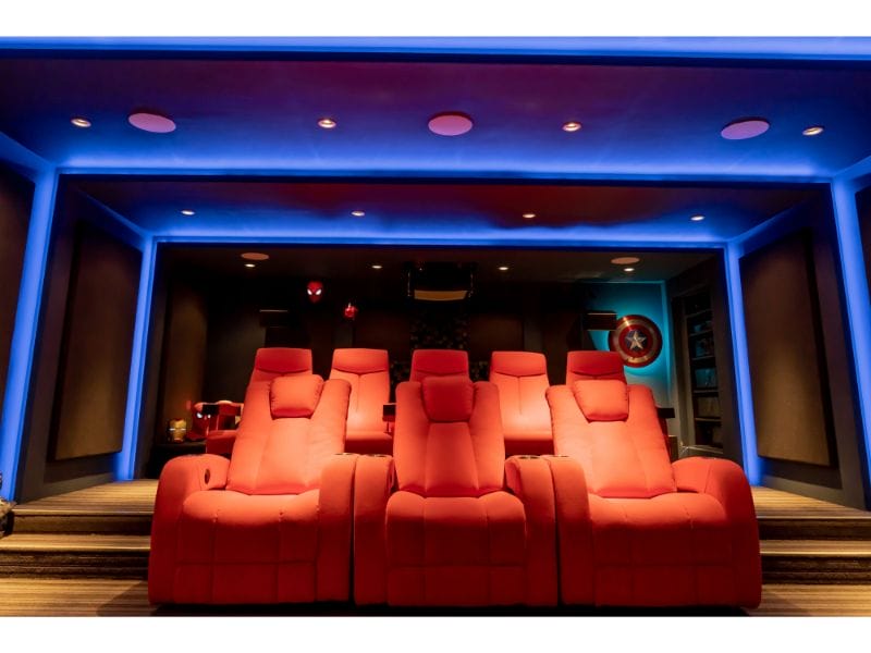 裝潢完最後再搭配電影超級英雄1:1等比例模型配合環控的發光加持,成就出全台影音效果極致的24聲道全景聲超級英雄劇院!!