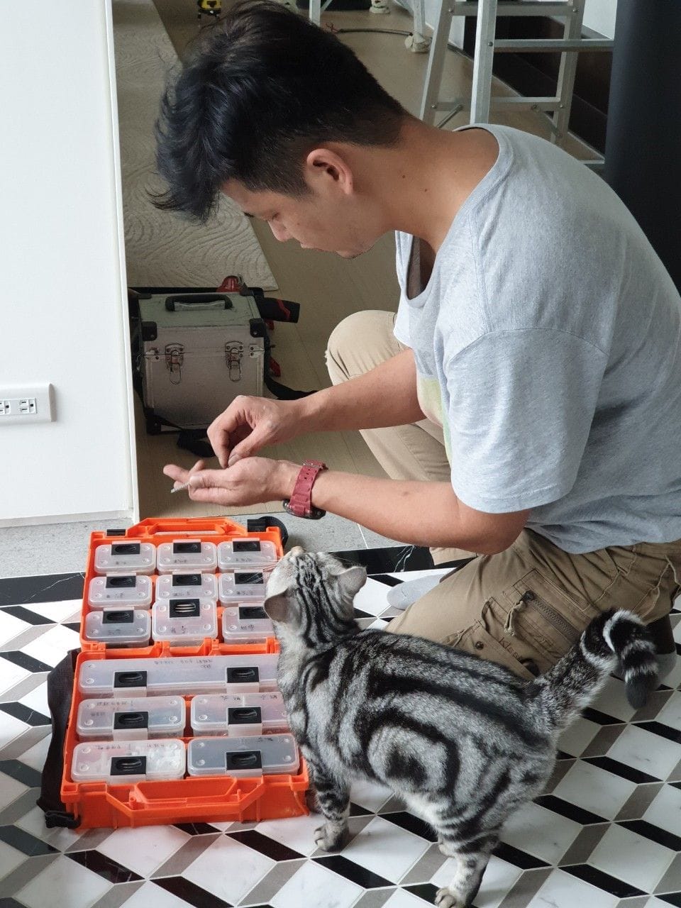 師傅們正在看修改的部分是否有電源,以及高寬深是否依照師傅的需求調整,接著就是安裝了!!