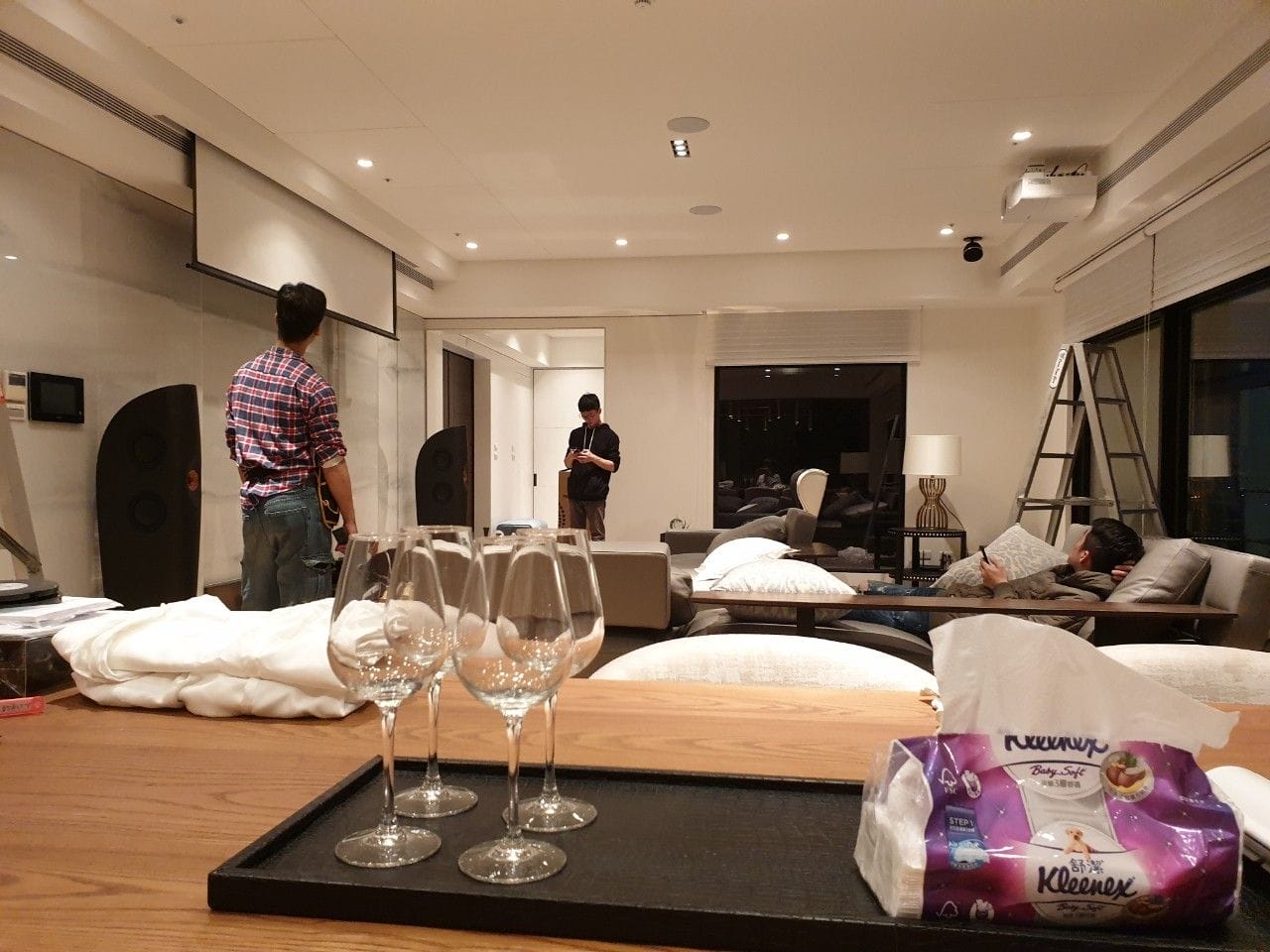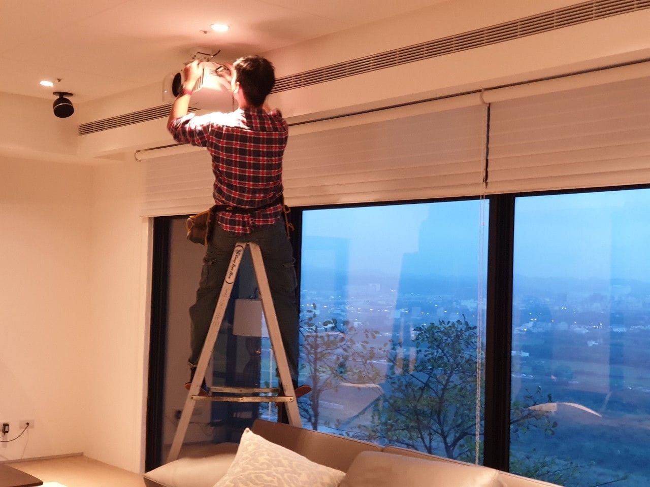 業主想要安裝布幕以及 5.1聲道還有投影機升降系統但是...難度實在太高,樣品屋會遇到以下狀況