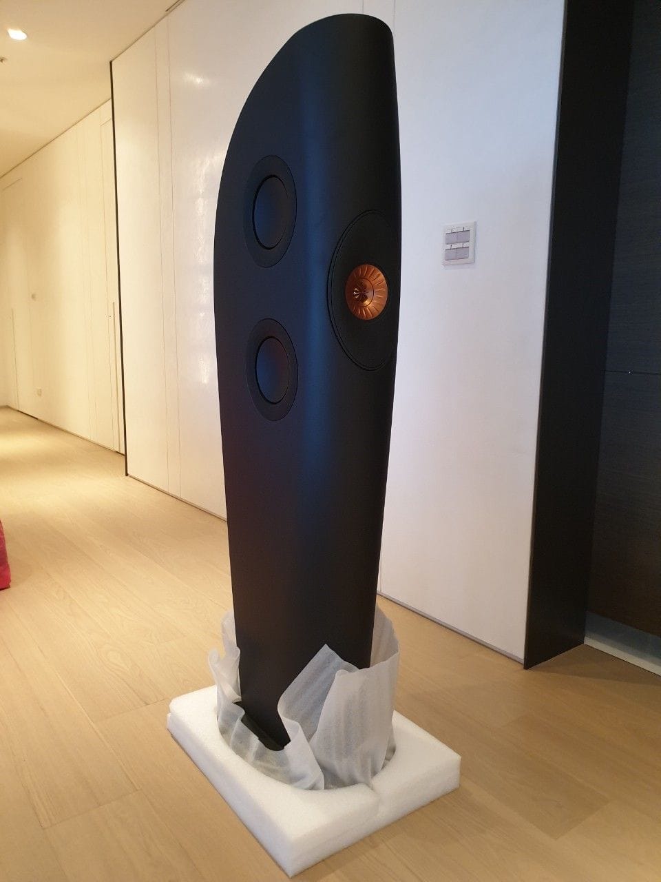 開箱瞜!!這隻就是令業主相當滿意的KEF Blade Two相當壯闊的體型