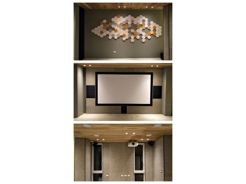 名展音響的家庭劇院規劃上,除了重視裝潢美感與優質的視聽效果外,也相當注重整體環境的隔音效果。我們家庭劇院的隔間牆使用雙層角料,以厚實的實心板封板塞滿吸音岩棉及抑震膠條,且謹慎周密的進行牆面處理,為您的家庭劇院達到絕佳的隔音效果。